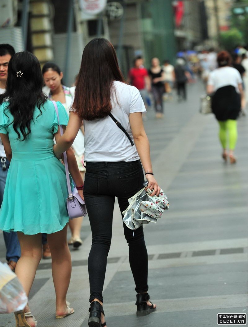 文匯路街拍的緊身牛仔褲美眉