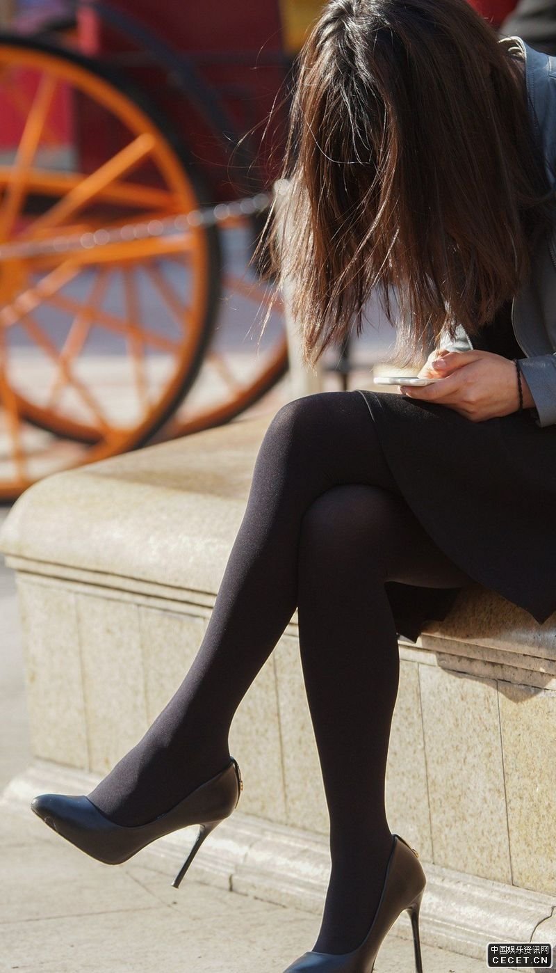 廣場(chǎng)臺階上抓拍的黑絲襪美女
