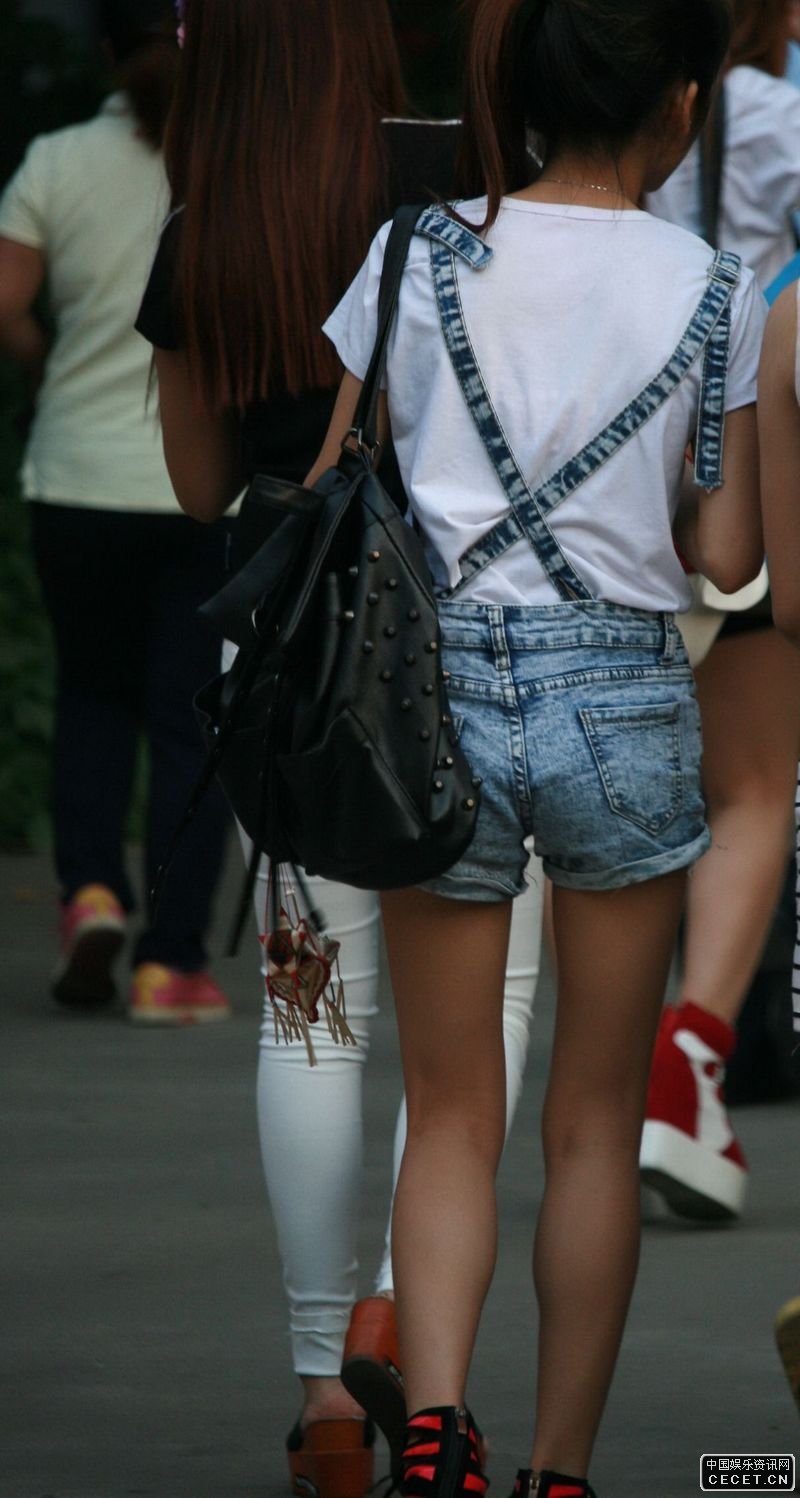 公園抓拍的牛仔熱褲長(cháng)腿美眉