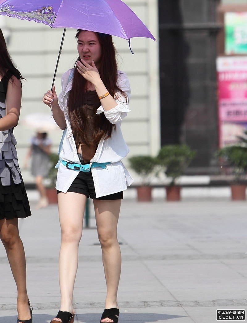 街拍的黑色短褲白皙美腿妹子