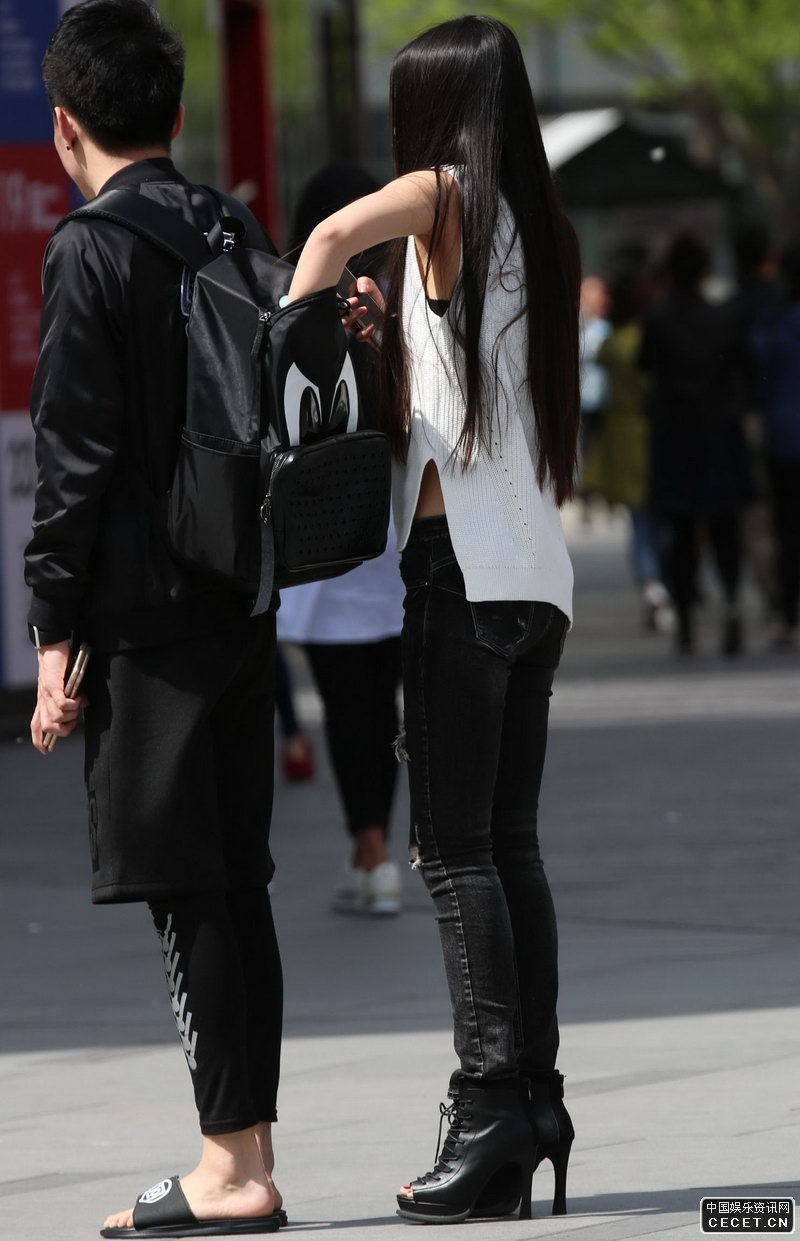 街拍的高挑身材牛仔褲美女