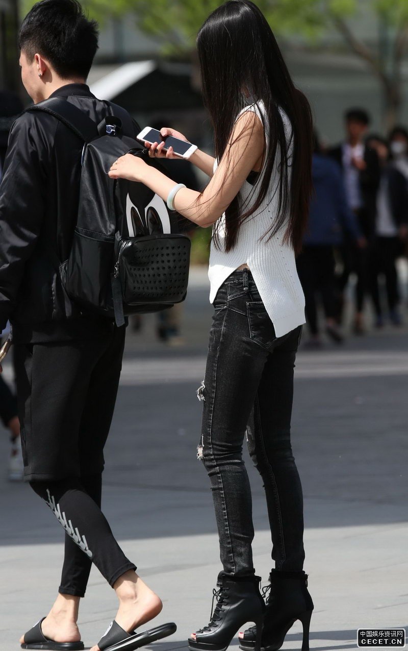 街拍的高挑身材牛仔褲美女