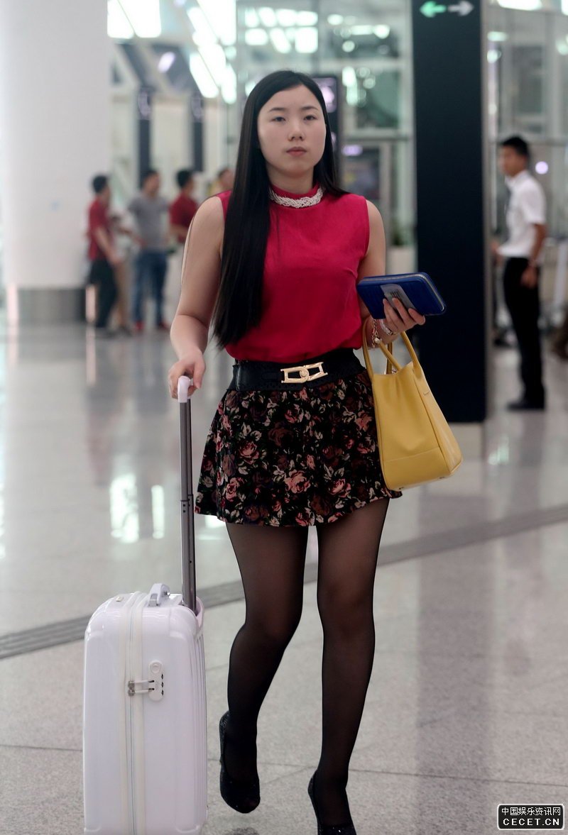 機場(chǎng)大廳抓拍的黑絲襪短裙美女