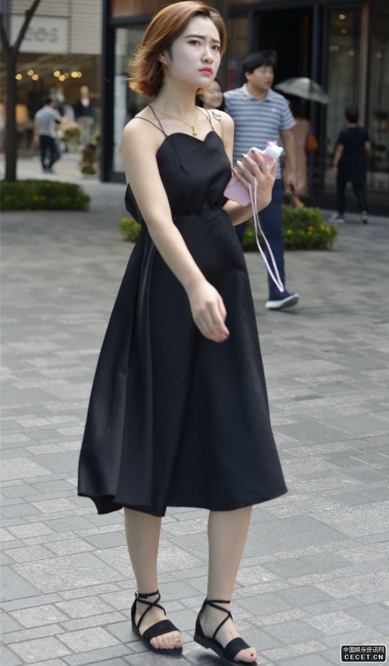 街拍的露背長(cháng)裙白皙肌膚美女