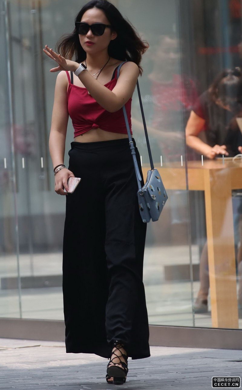 街拍的吊帶衫長(cháng)褲墨鏡姐姐
