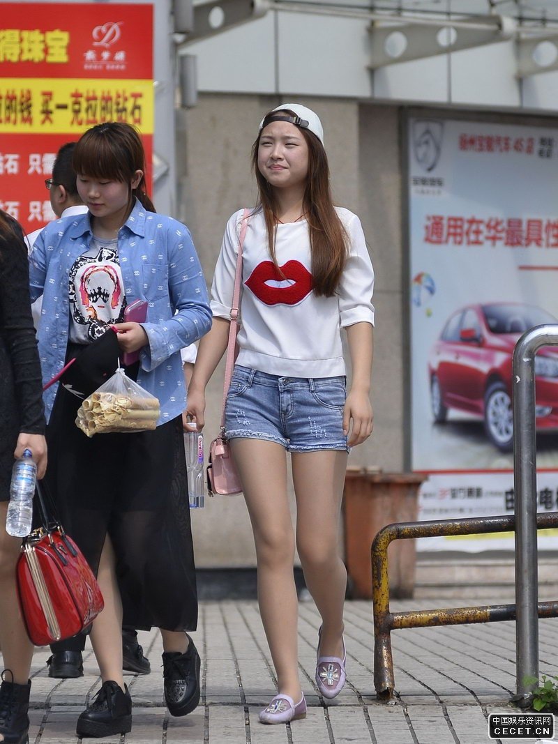 建國西路街拍的牛仔短褲美女
