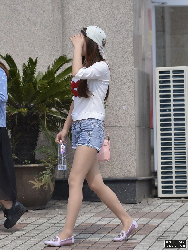 建國西路街拍的牛仔短褲美女