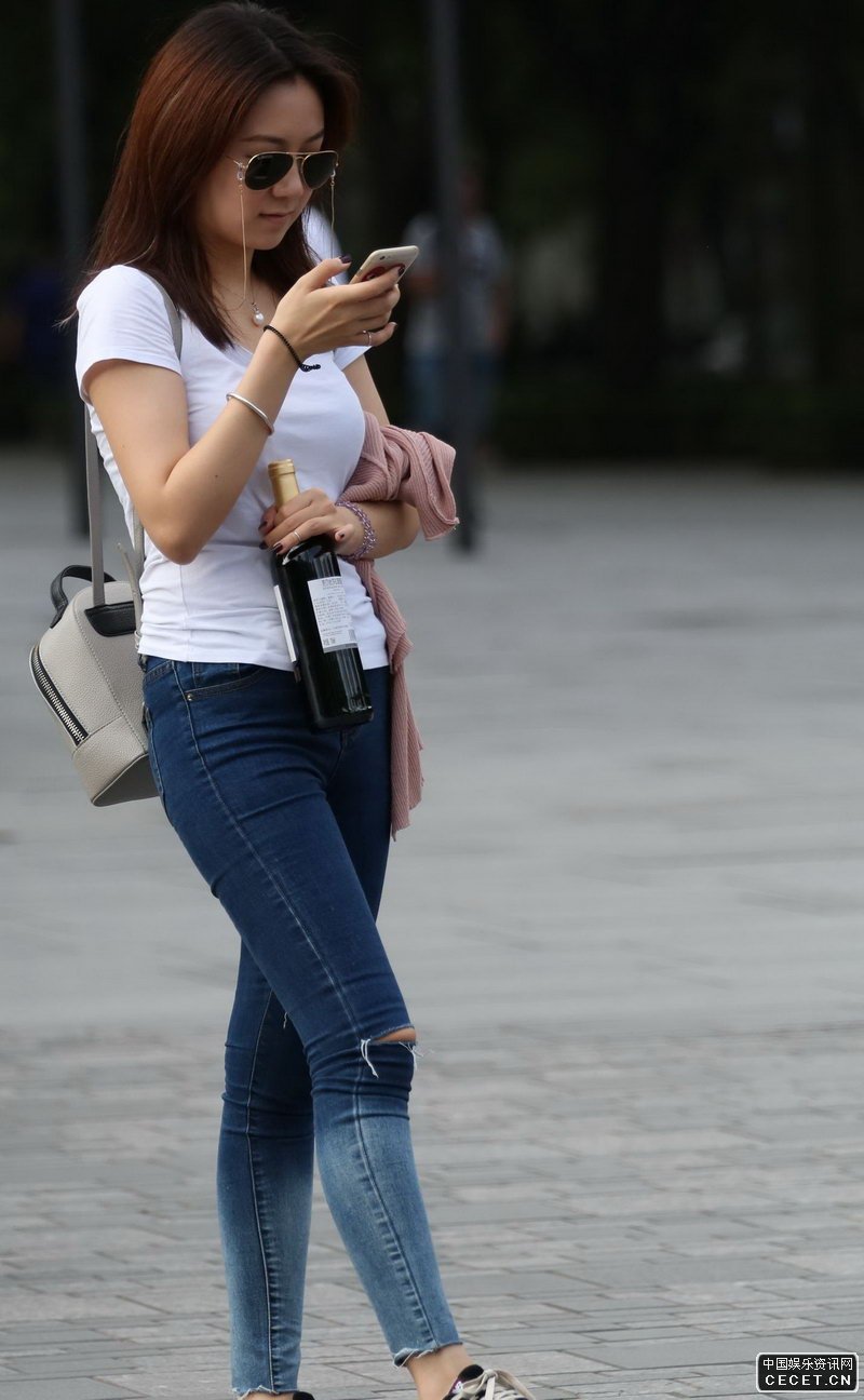 街拍緊身牛仔褲豐滿(mǎn)身材美女