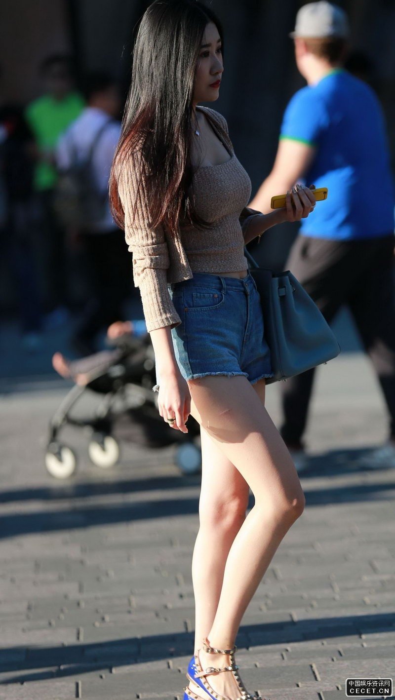 街拍的牛仔短褲長(cháng)腿高挑美女