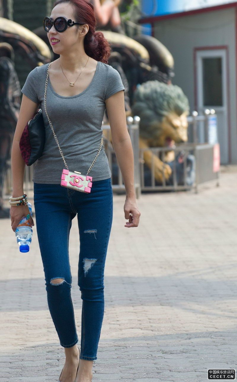兒童樂(lè )園抓拍的牛仔褲美女姐姐