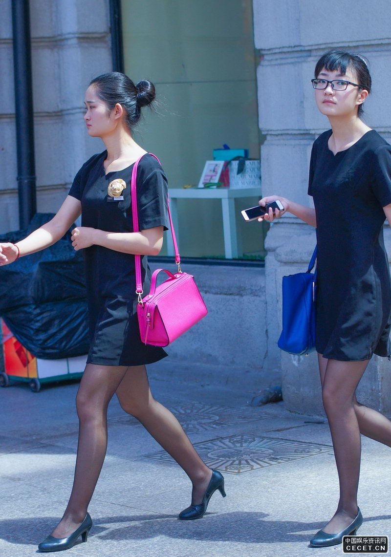 街拍的兩個(gè)職業(yè)裝黑絲襪美女