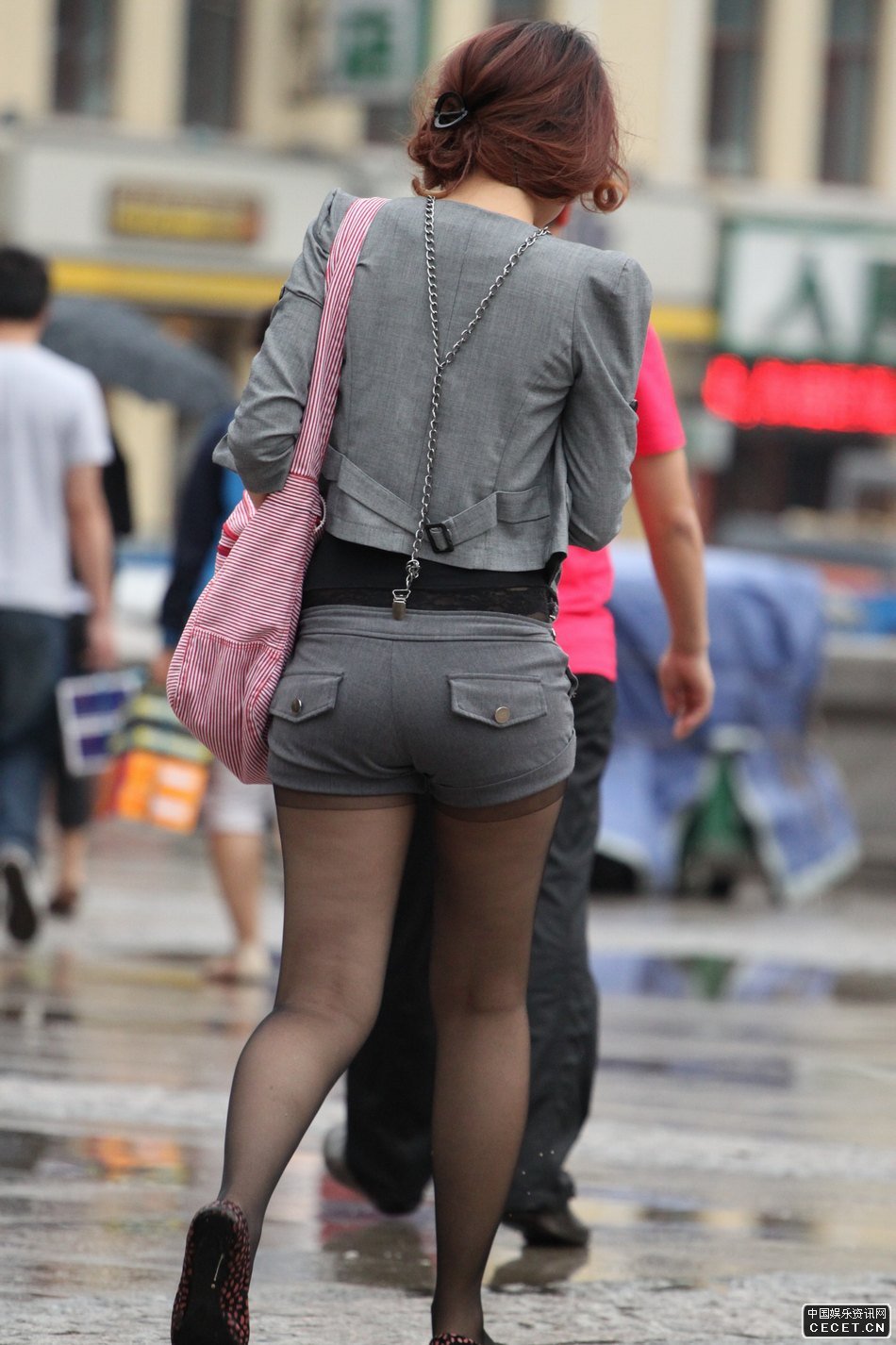 廣場(chǎng)街拍的黑絲襪短褲美女