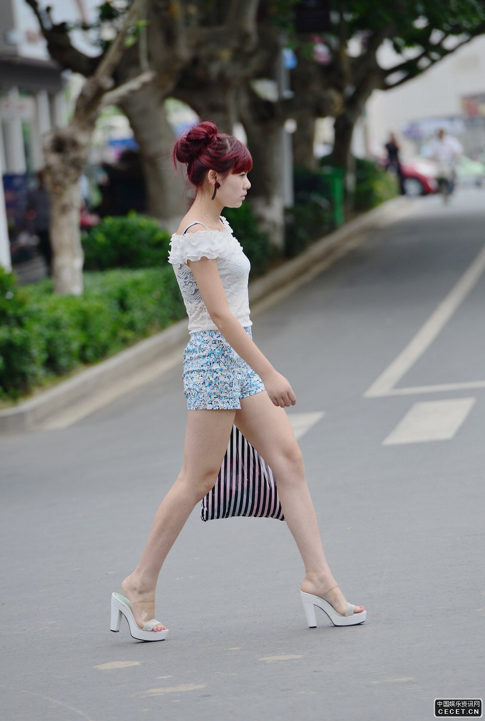 街拍的花色短褲長(cháng)細腿美女