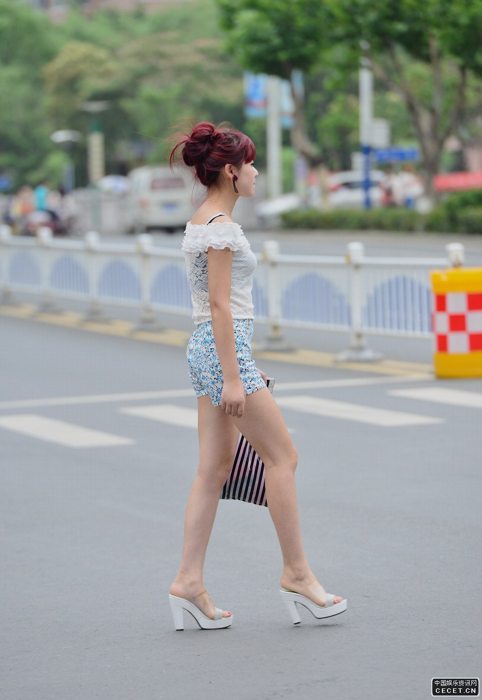 街拍的花色短褲長(cháng)細腿美女
