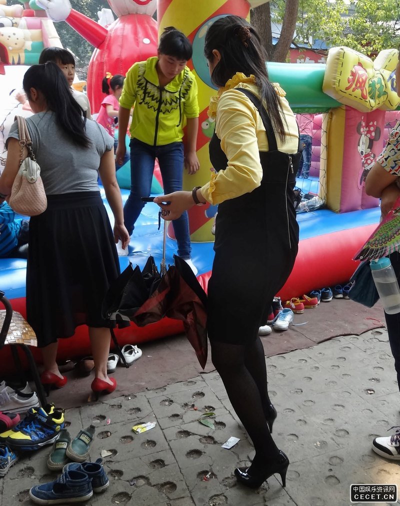 兒童樂(lè )園抓拍的黑色網(wǎng)襪美少婦