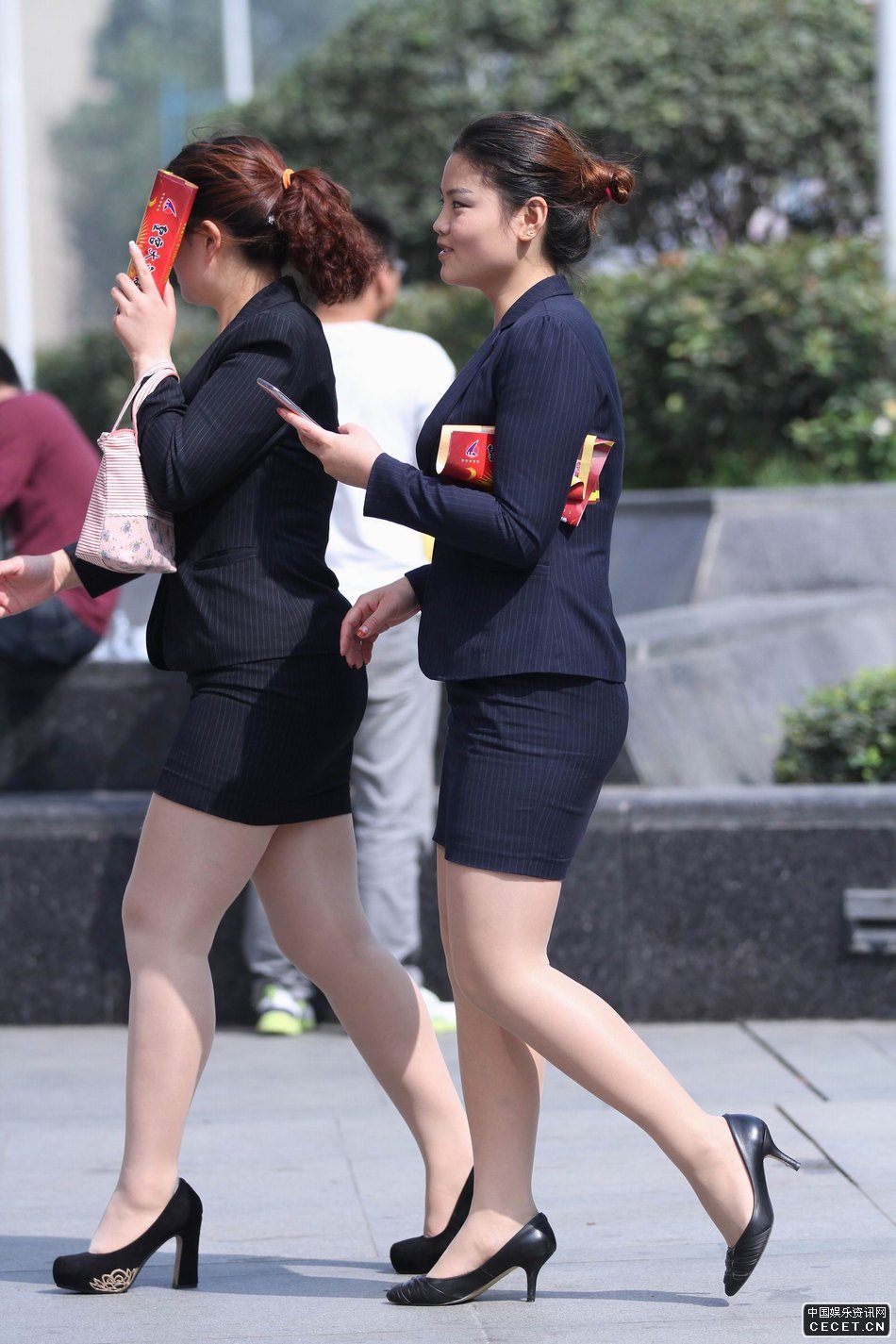 廣場(chǎng)街拍的兩個(gè)制服肉絲美女