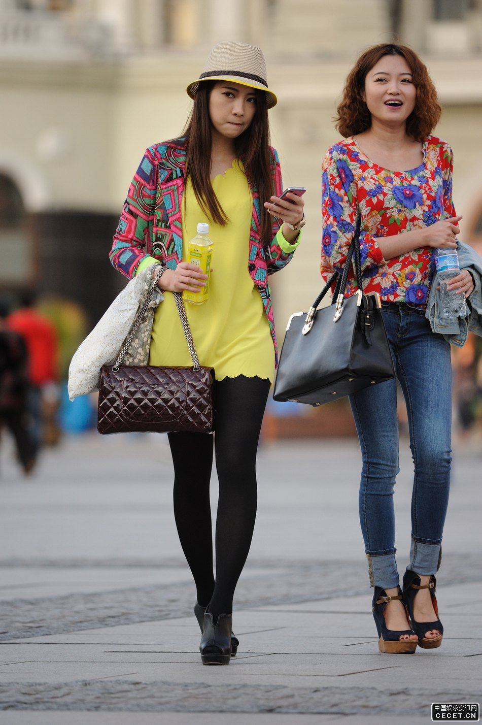 文化廣場(chǎng)街拍的兩個(gè)時(shí)尚美女