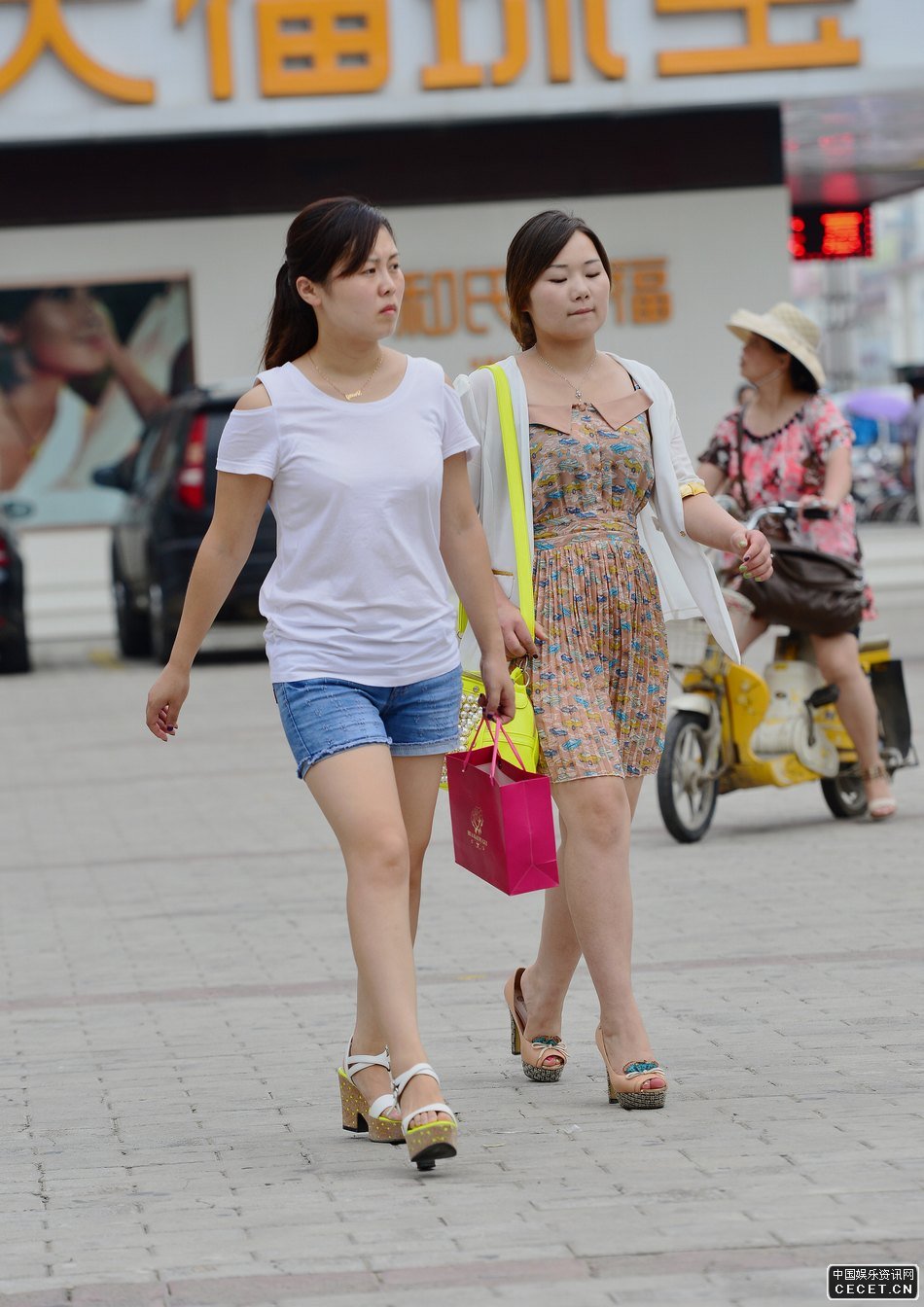 街拍的牛仔短褲白嫩美腿妹子