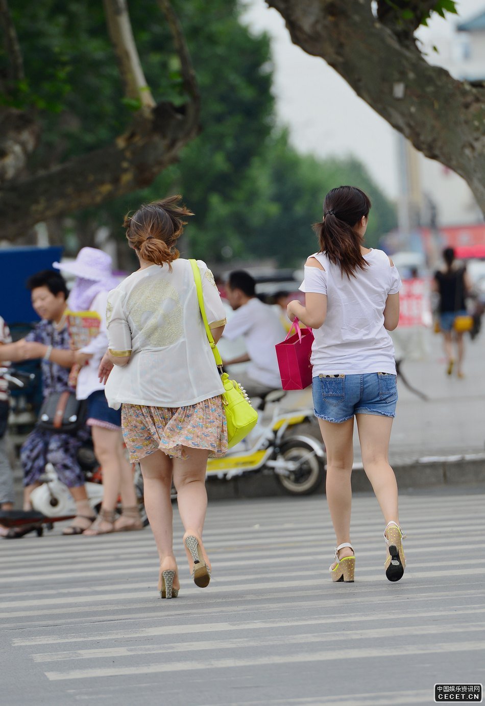街拍的牛仔短褲白嫩美腿妹子