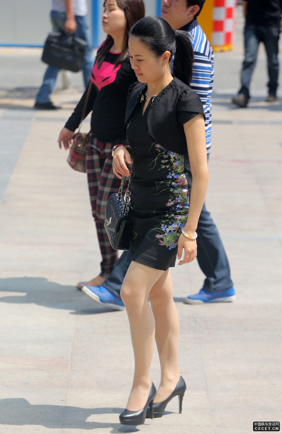 韻味少婦黑色印花旗袍突顯誘人身姿