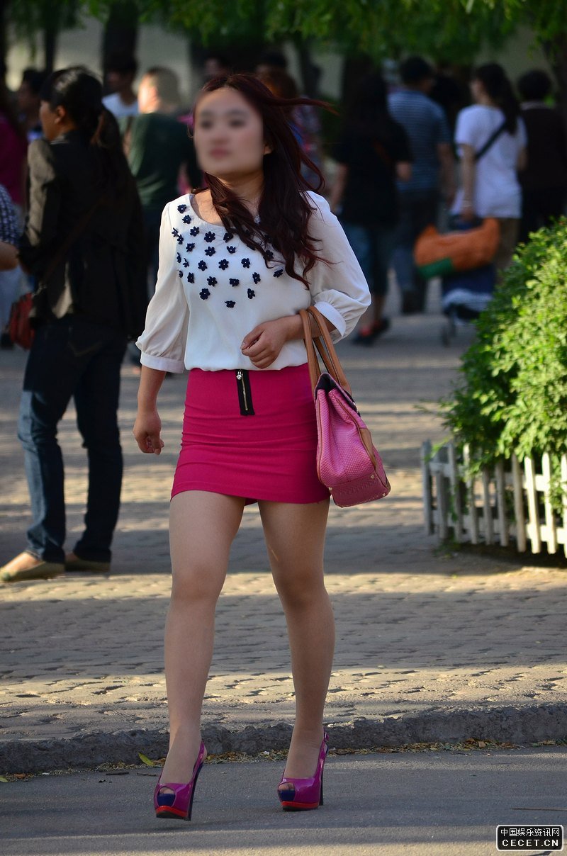 包臀紅裙肉色絲襪超高跟豐滿(mǎn)肉感妹子