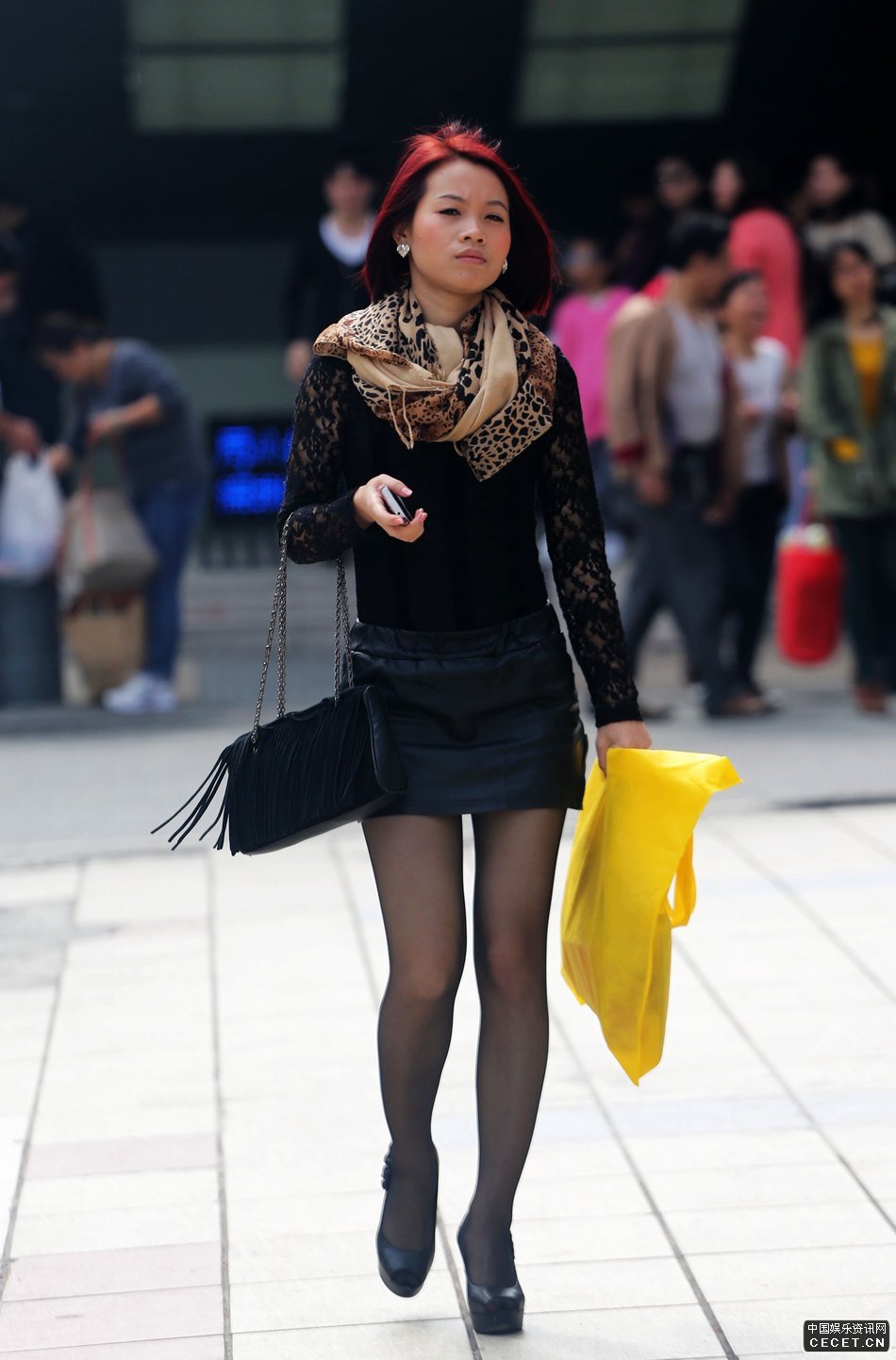 蕾絲上衣皮革超短裙紅發(fā)黑絲美眉