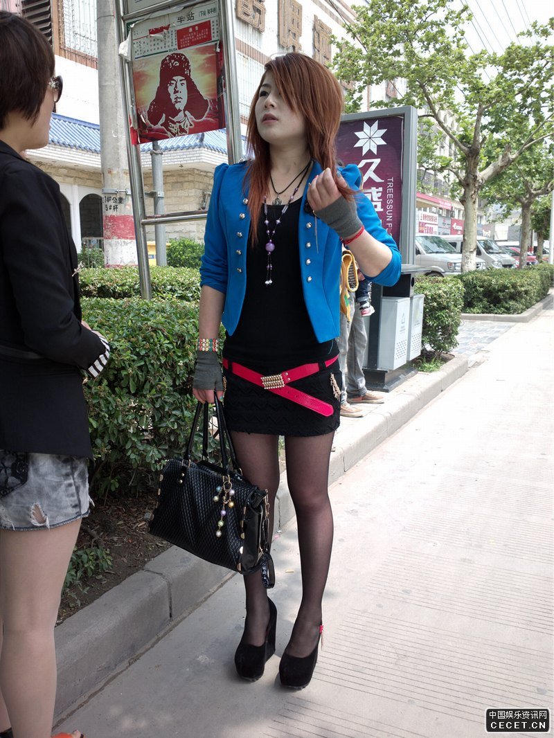 街拍路邊等車(chē)的黑絲襪火辣妹子