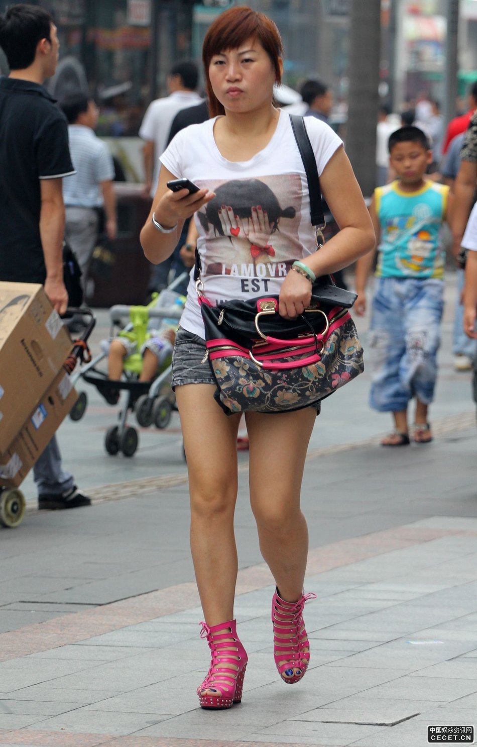 牛仔熱褲白嫩美腿豐滿(mǎn)好身材妹子
