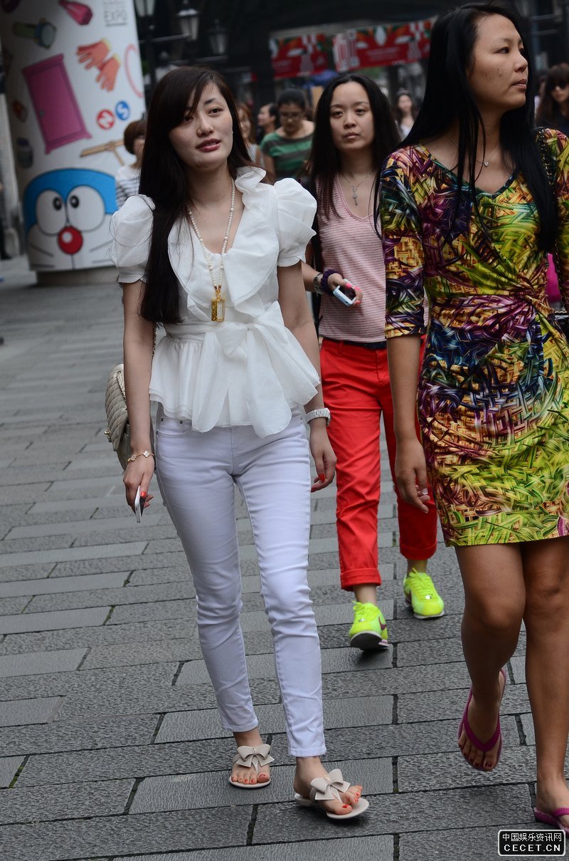 豐州西路街拍白色緊身長(cháng)褲靚妹