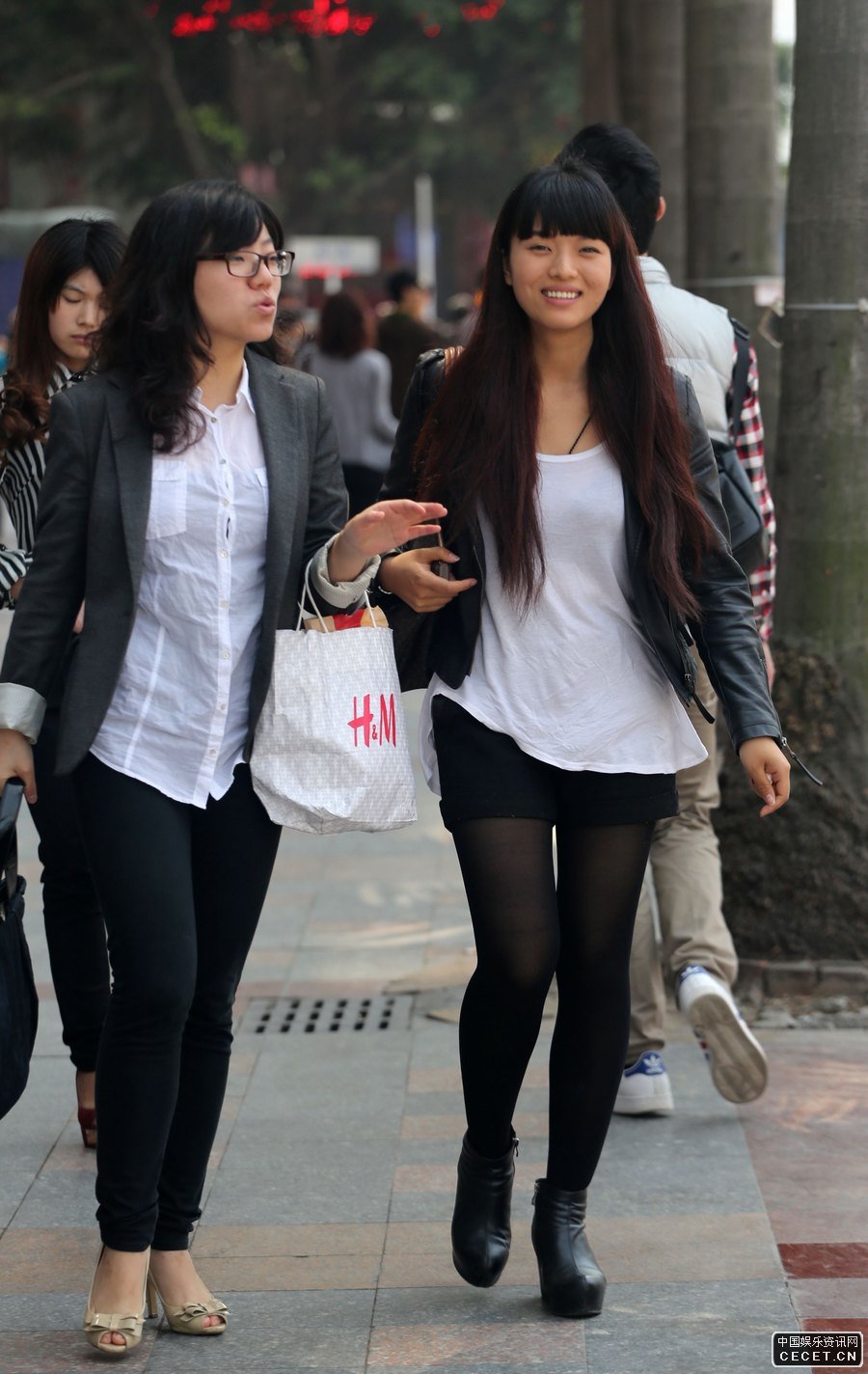 黑絲短褲美眉白色T恤內搭淳樸自然
