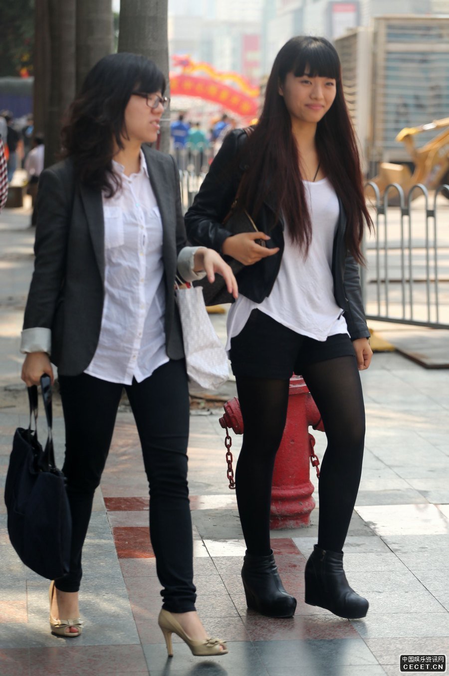 黑絲短褲美眉白色T恤內搭淳樸自然
