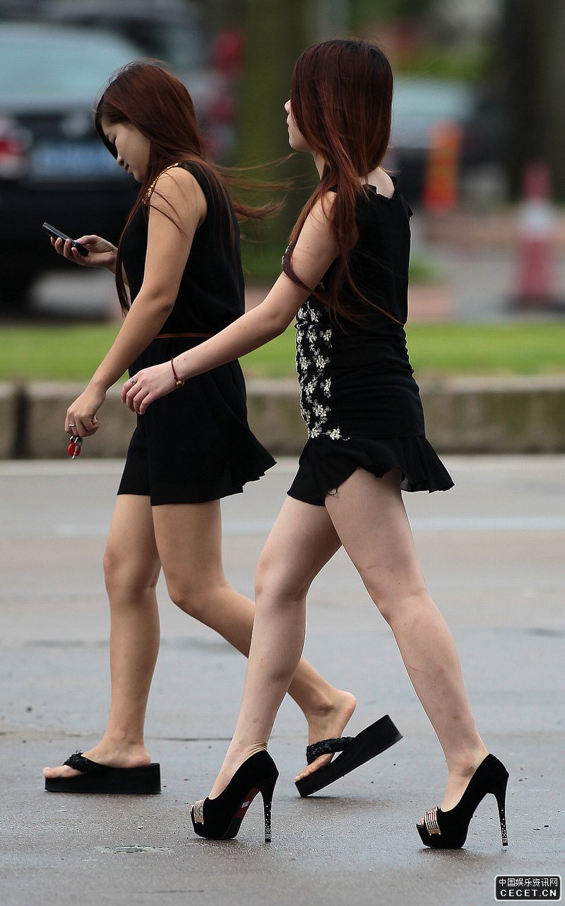 超短的連衣裙雪白美腿魚(yú)嘴超高跟