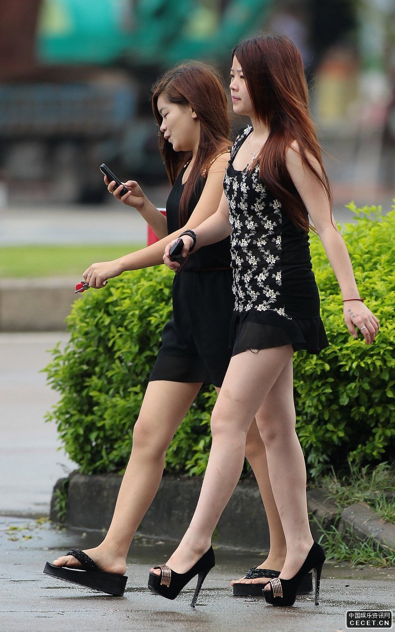 超短的連衣裙雪白美腿魚(yú)嘴超高跟