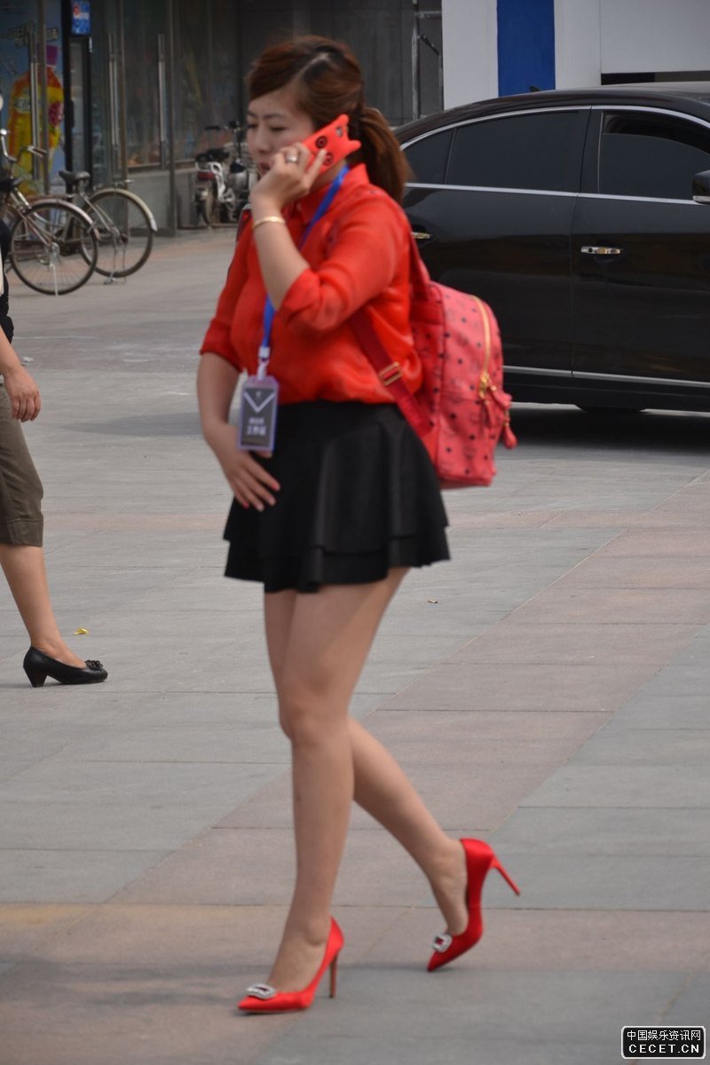 紅衣黑色超短裙美女身材豐滿(mǎn)惹眼