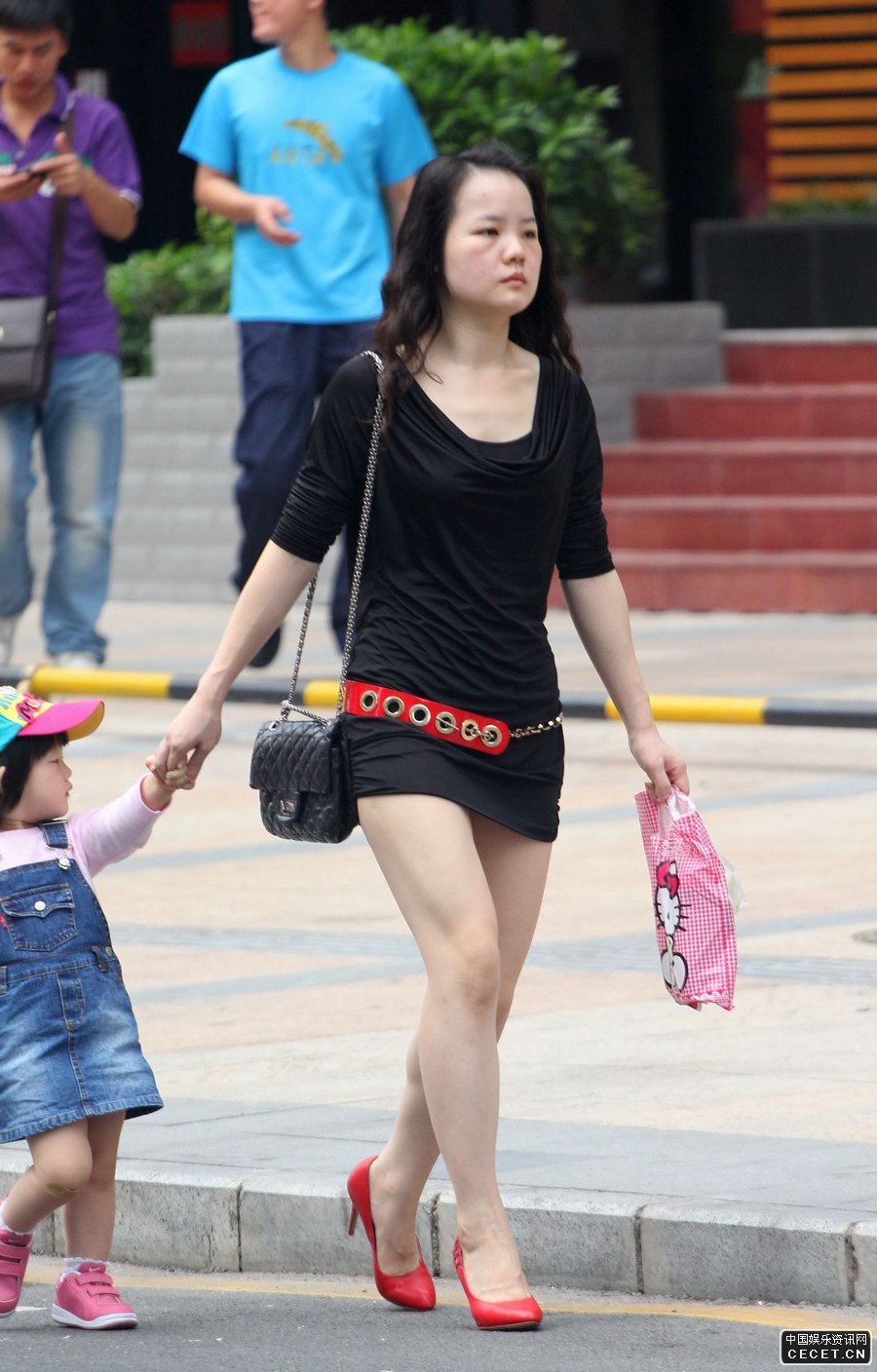 玉腿辣媽肌膚白嫩紅色高跟引人注目