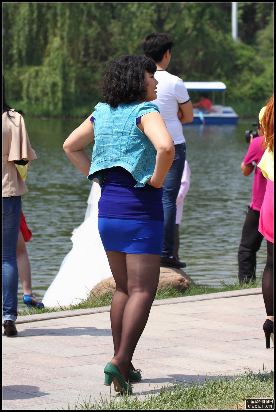 植物園抓拍豐滿(mǎn)的藍裙黑絲伴娘