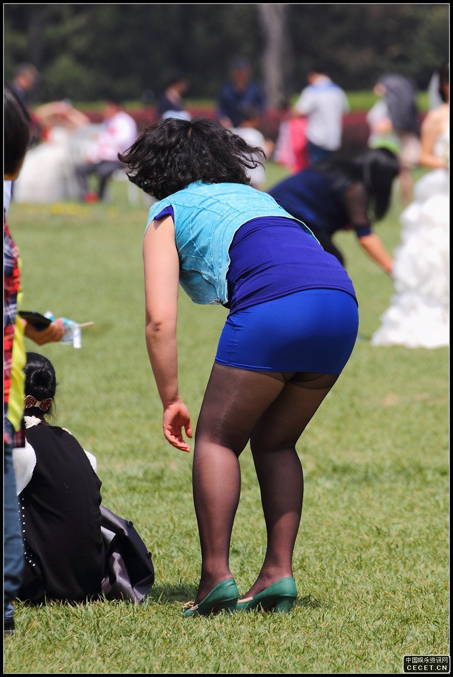 植物園抓拍豐滿(mǎn)的藍裙黑絲伴娘