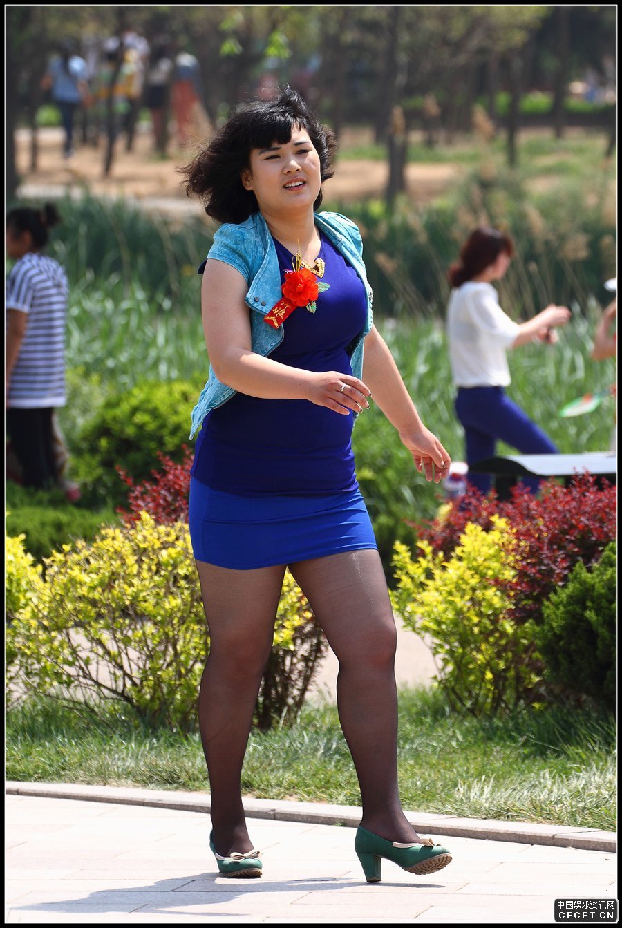 植物園抓拍豐滿(mǎn)的藍裙黑絲伴娘