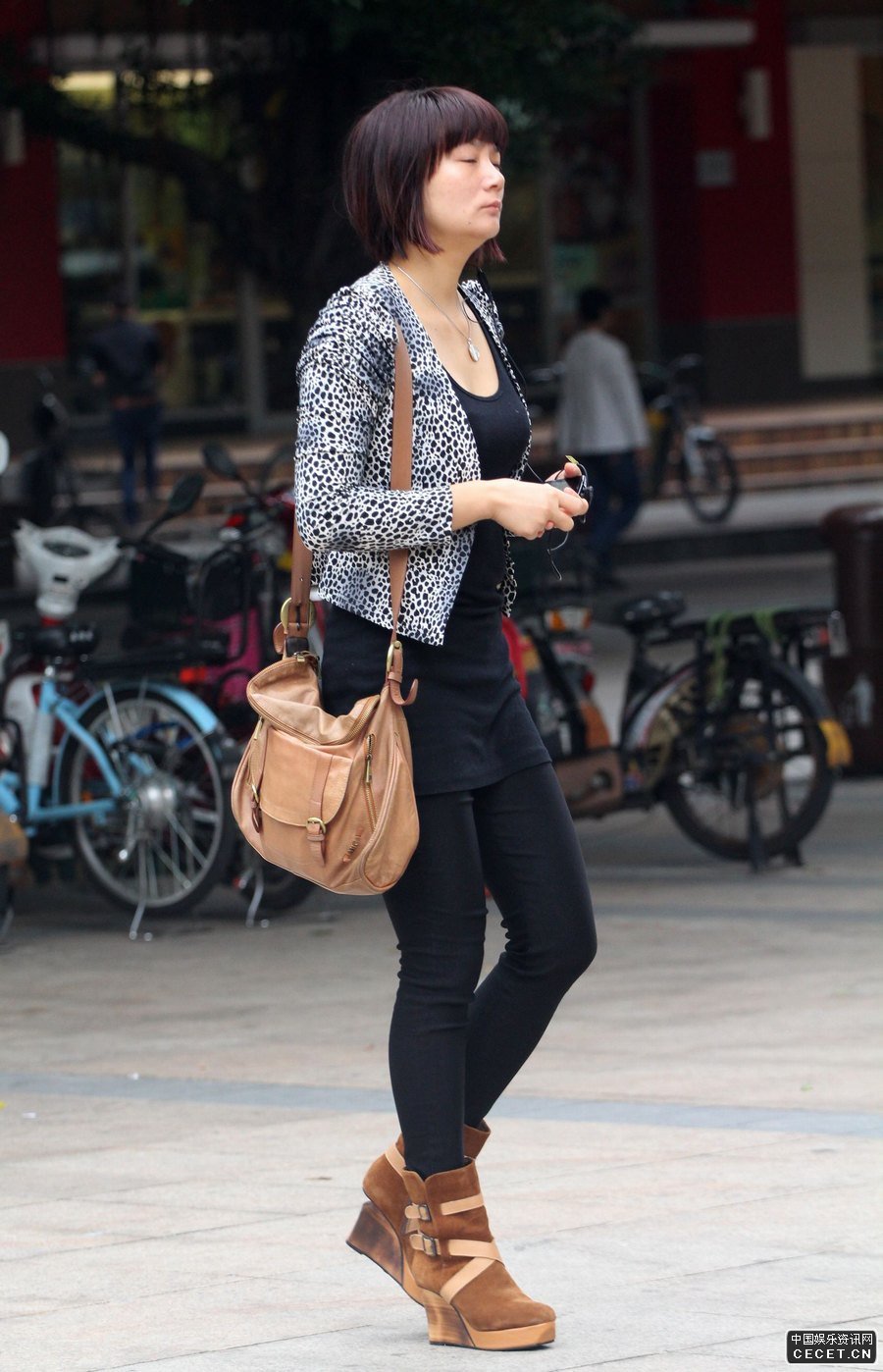 文藝東路街拍的緊身褲氣質(zhì)美女