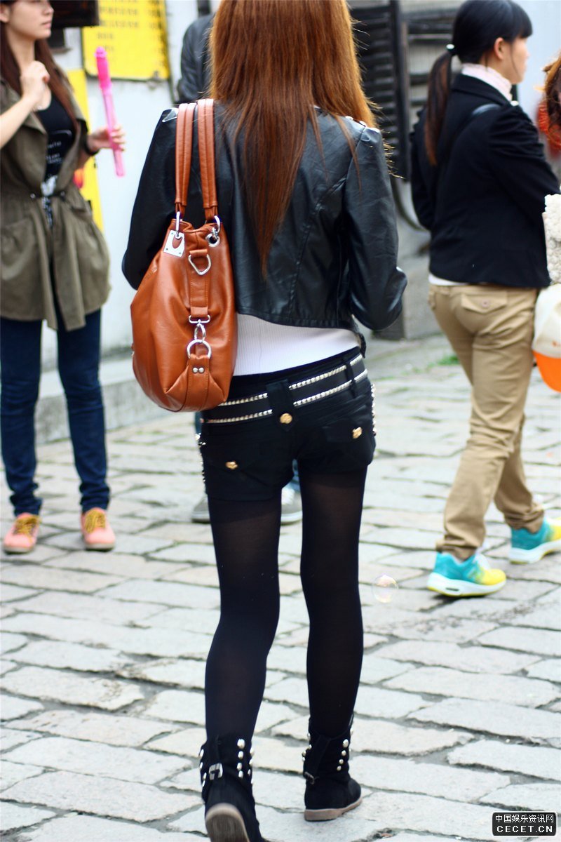旅游景區抓拍的緊身熱褲黑絲妹妹