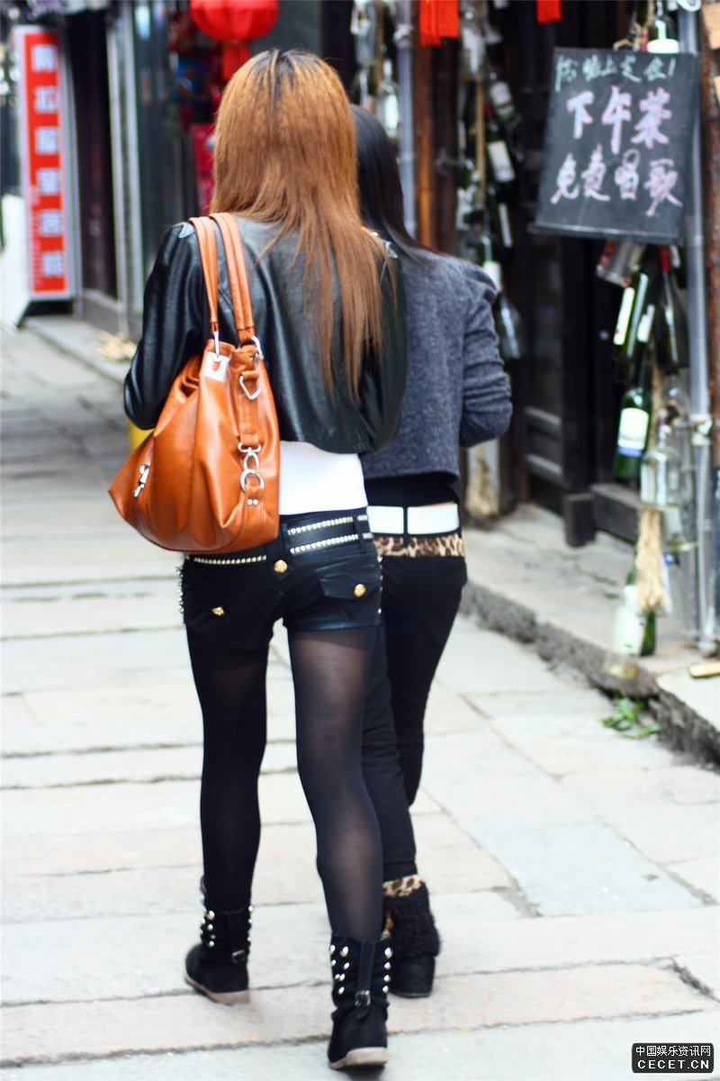旅游景區抓拍的緊身熱褲黑絲妹妹