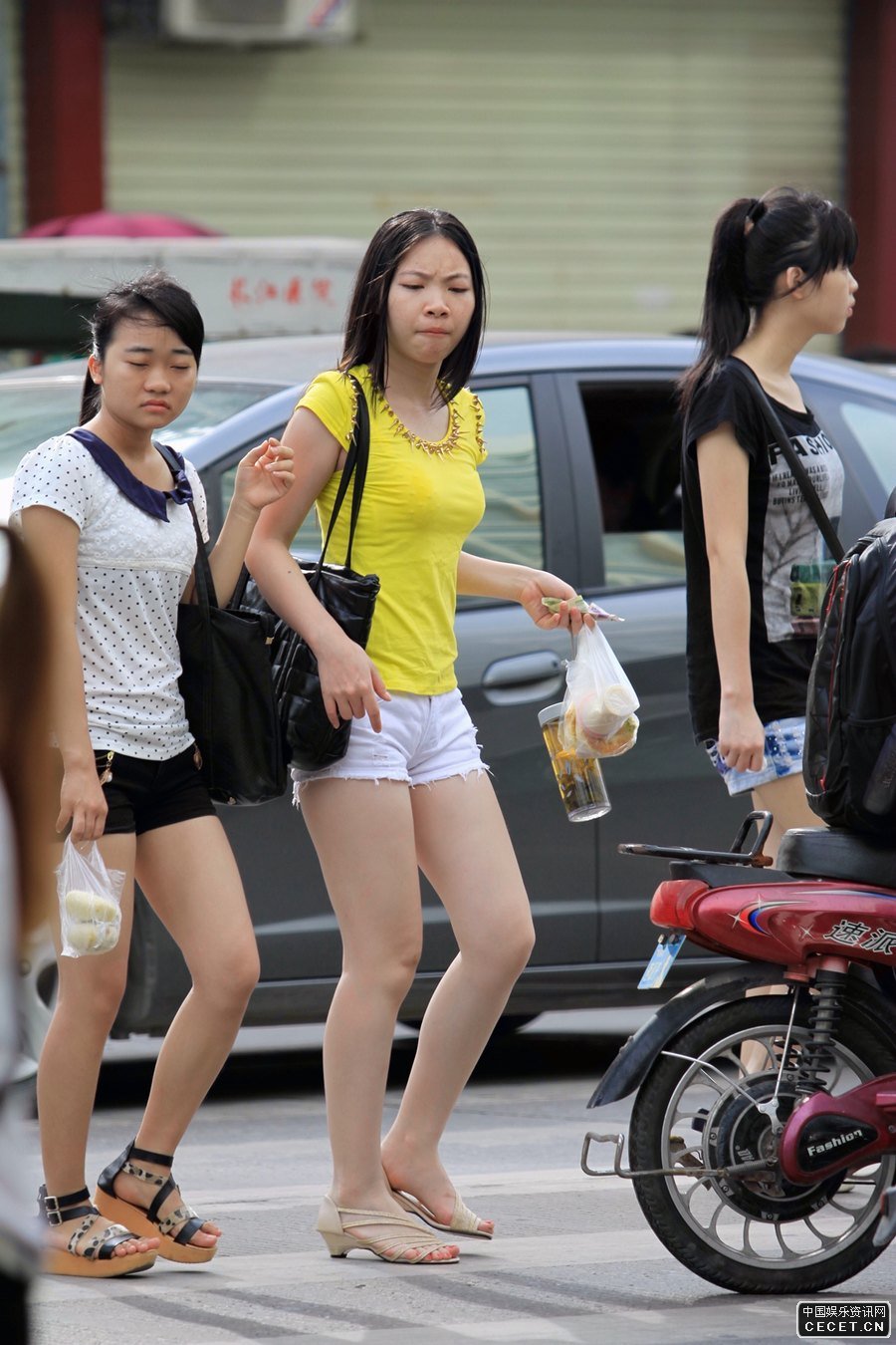 白色熱褲淑女苗條秀氣美腿嫩白光滑