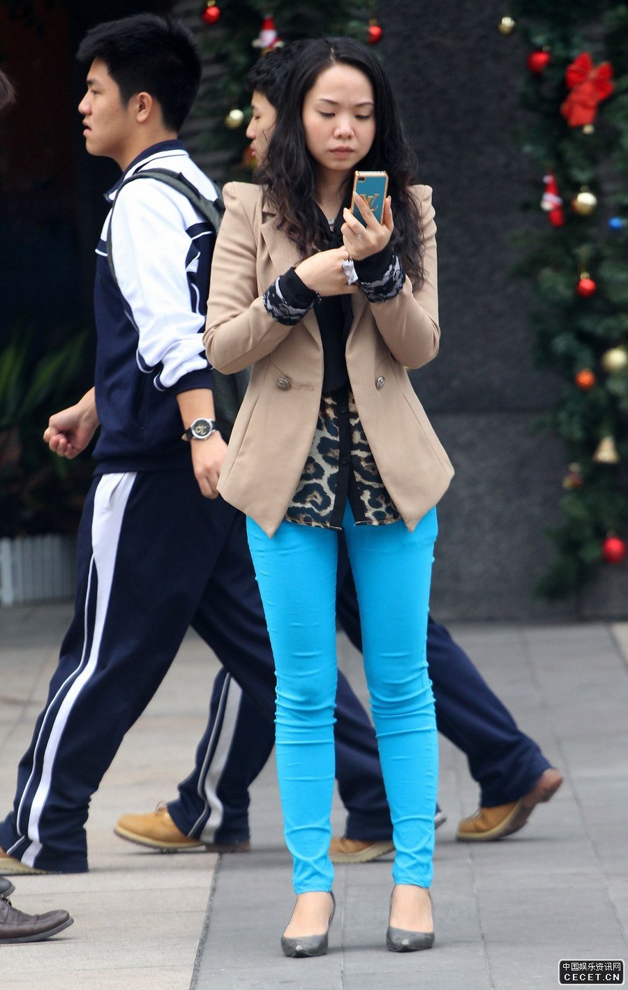 街拍綠色鉛筆褲靚麗美女亭亭玉立