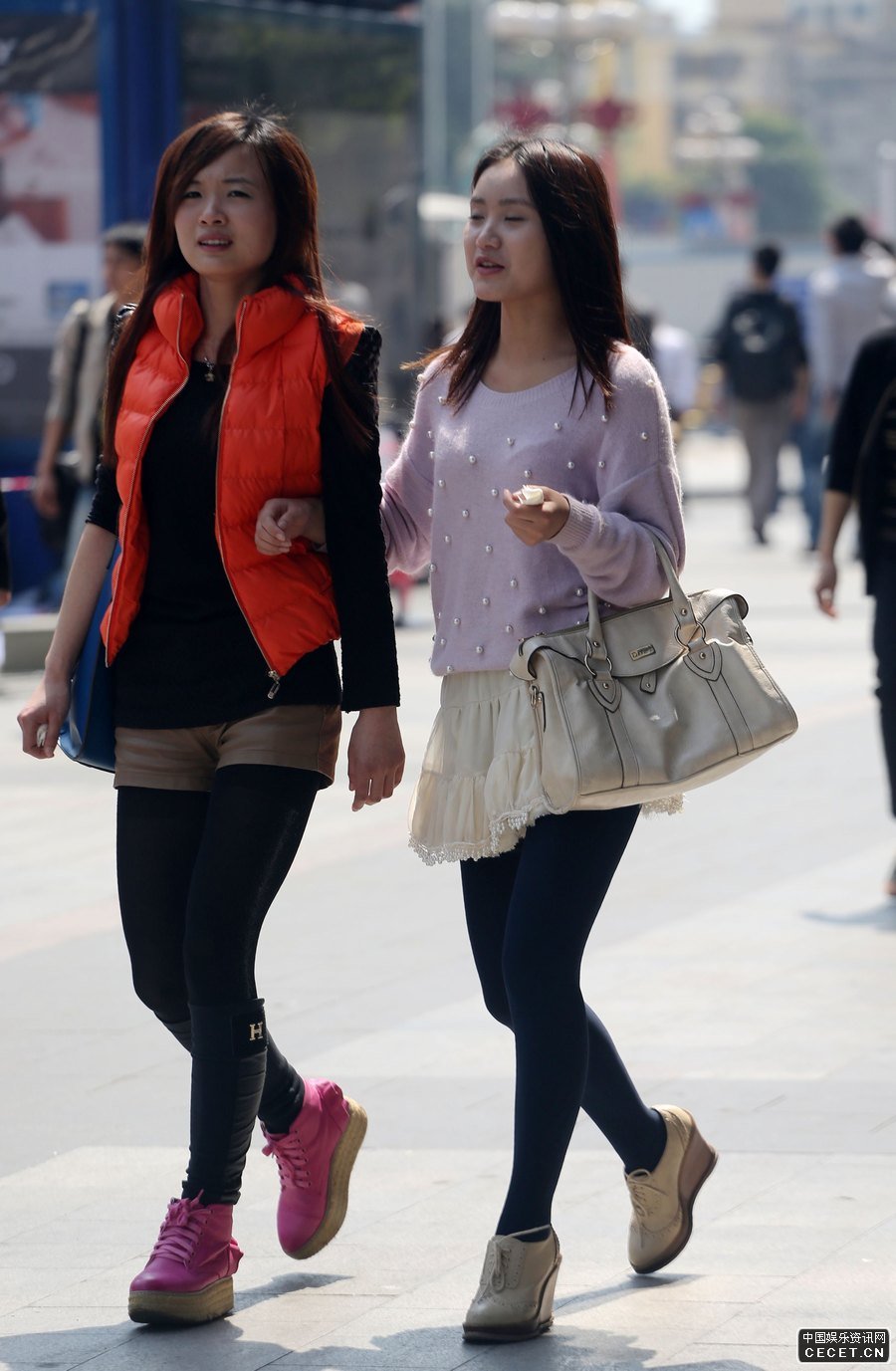 迎賓西路街拍的好身材魅力姐妹花
