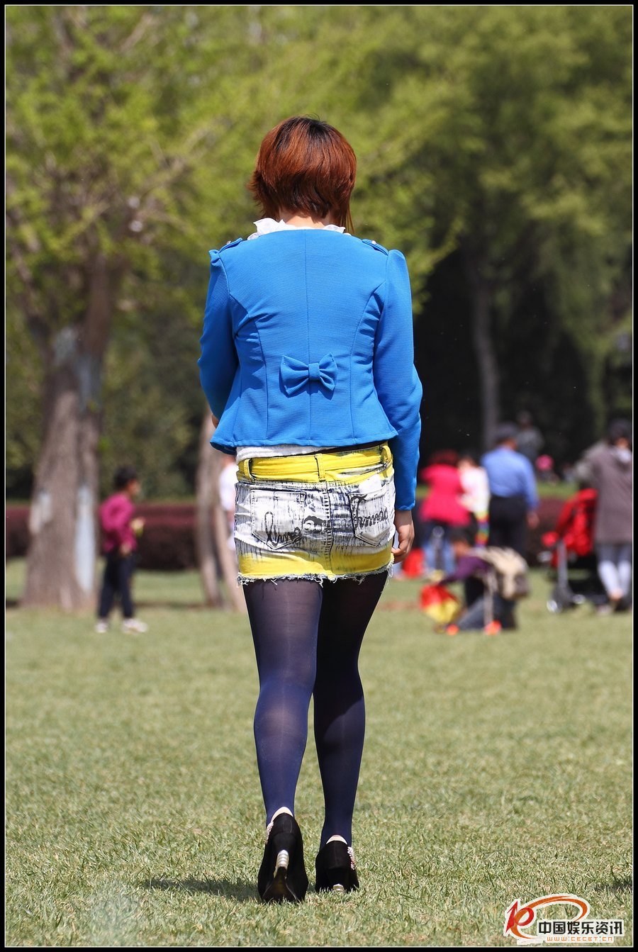 人民公園抓拍的牛仔短裙藍絲妹妹