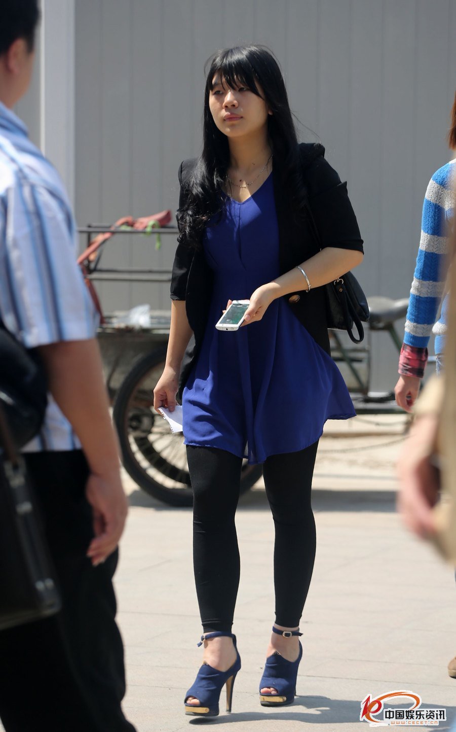 黑色打底褲豐滿(mǎn)的體態(tài)飄逸的藍衣