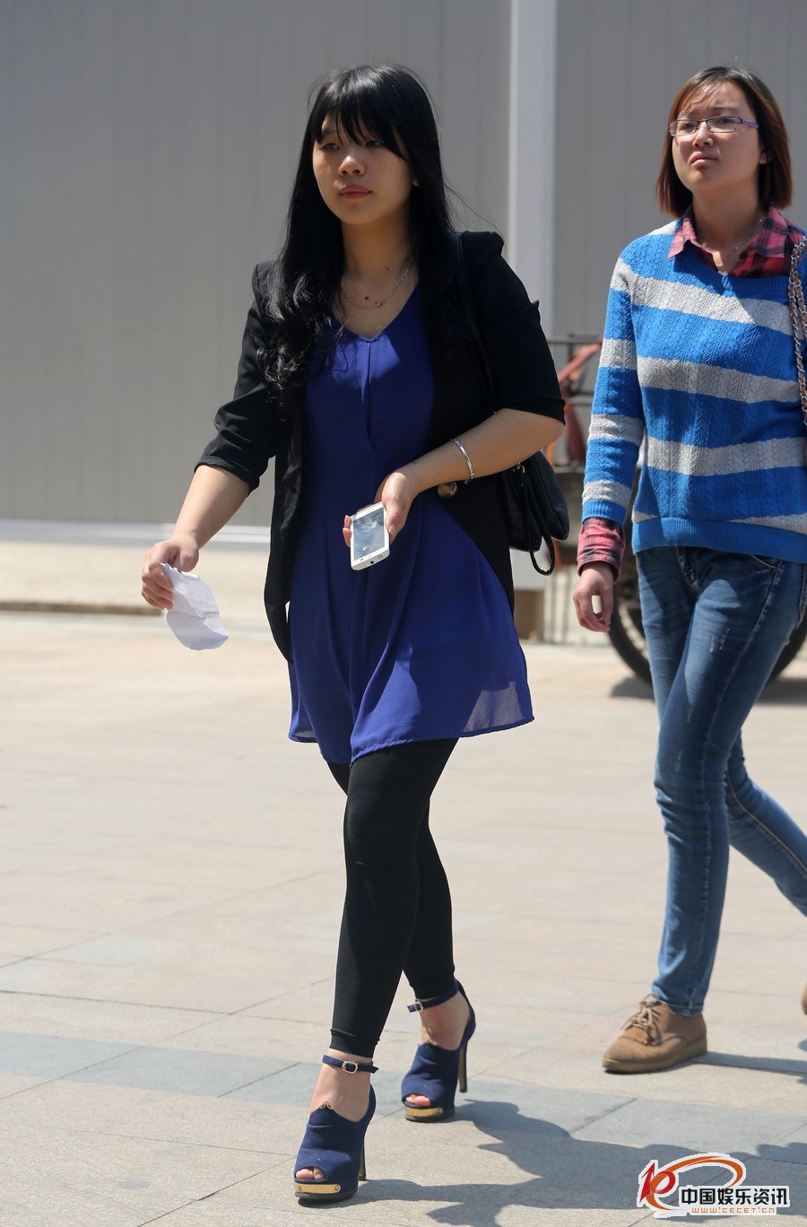 黑色打底褲豐滿(mǎn)的體態(tài)飄逸的藍衣
