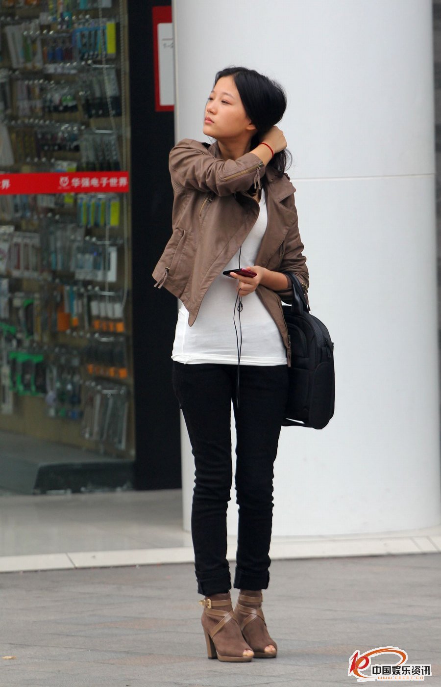苗條妹子骨感身材輕撫秀發(fā)亭亭玉立