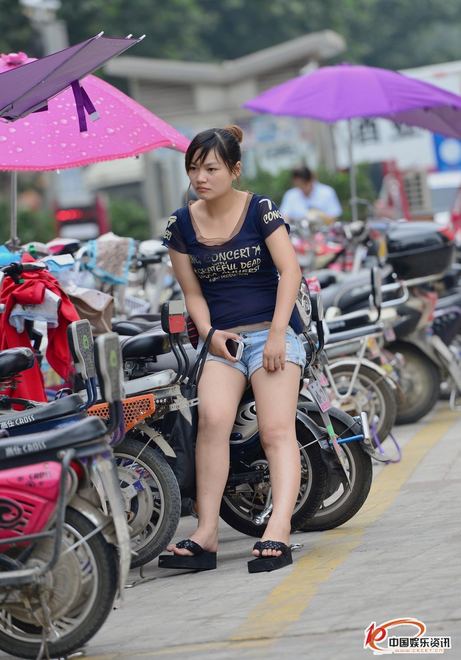 抓拍電動(dòng)車(chē)上的牛仔熱褲肉感小妹