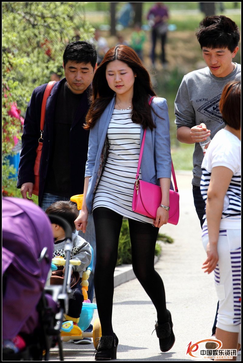 文靜的妹妹黑白橫條短裙窈窕的身姿